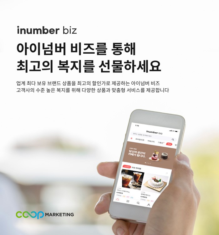 모바일 플랫폼 기업 쿠프마케팅(대표 전우정)이 기업 복지몰 서비스 ‘아이넘버 비즈(inumber Biz)’를 출시했다고 15일 밝혔다.