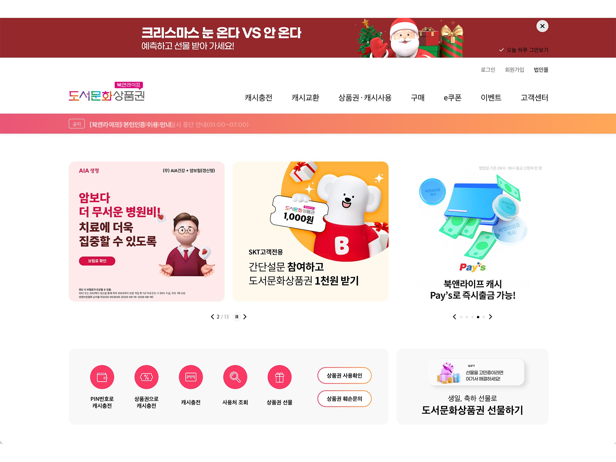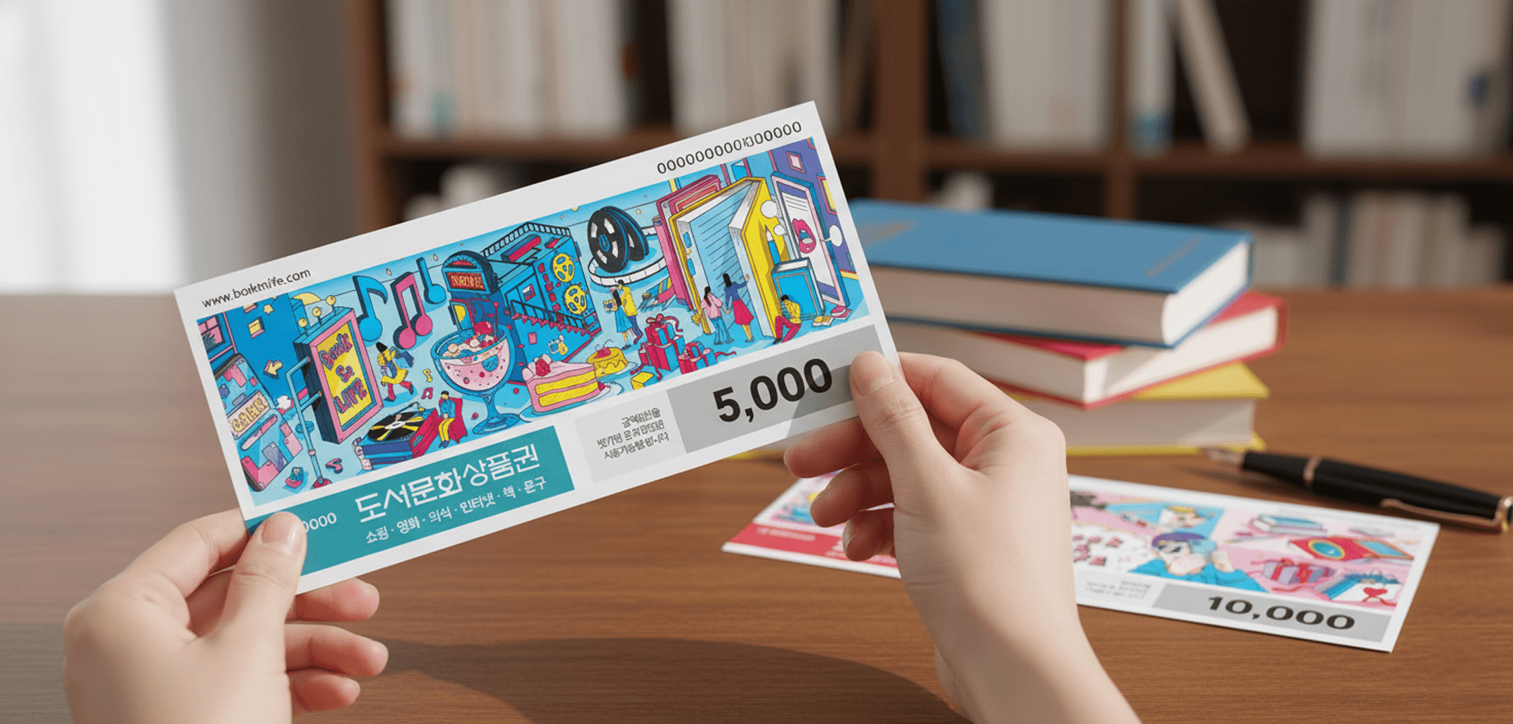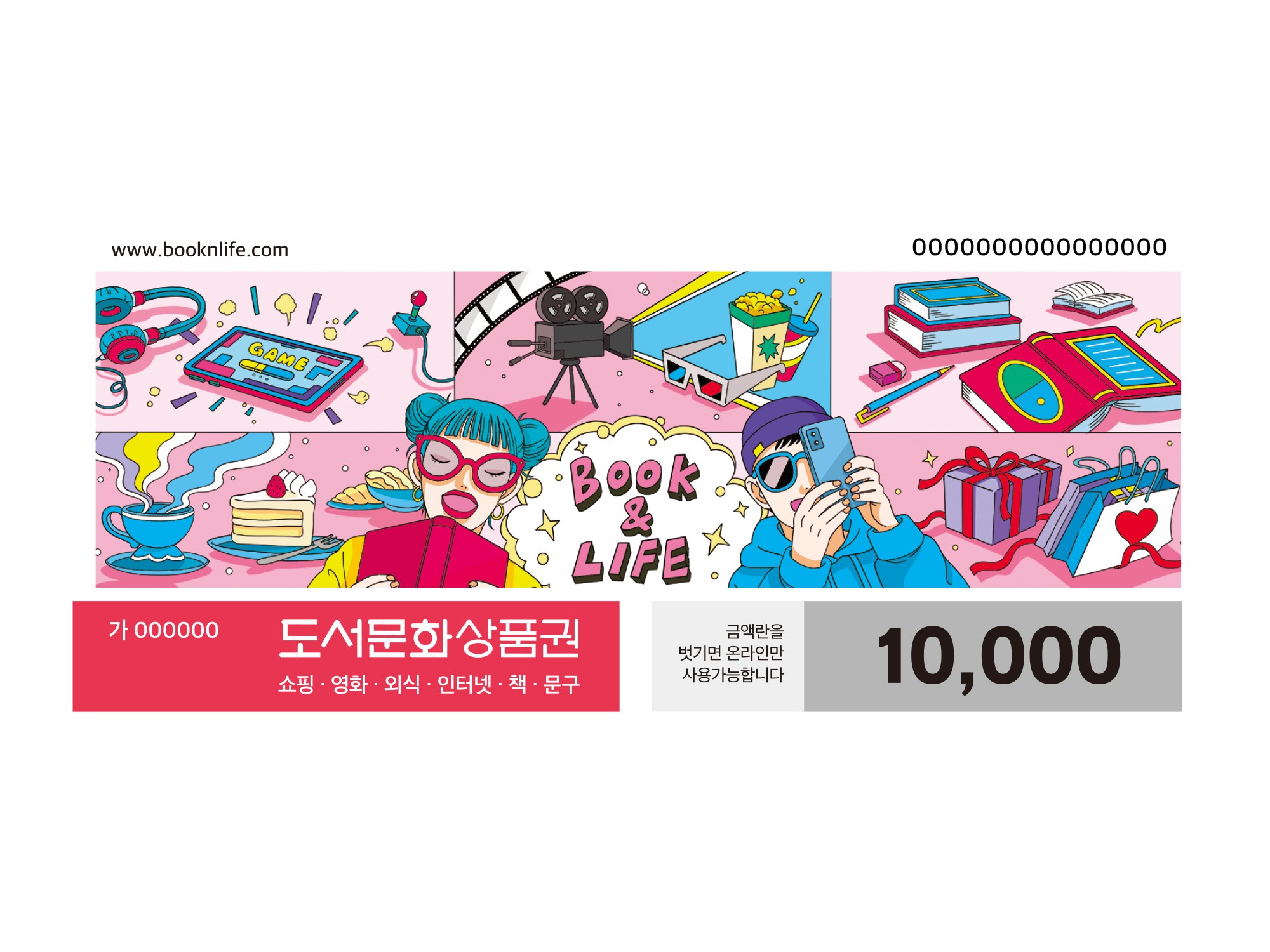 북앤라이프 도서문화상품권은 전통적인 도서 영역을 넘어 영화, 공연, 외식, 쇼핑 및 각종 디지털 콘텐츠에 이르기까지, 라이프스타일 전반을 아우르는 2만여 개의 방대한 사용처를 보유한 국내 대표 멀티 문화 플랫폼입니다. 특히 간편한 모바일 발송 시스템과 PIN 번호 기반의 즉각적인 캐시 전환 기능을 완벽하게 지원하여, 온·오프라인의 경계 없이 언제 어디서나 자유롭게 사용할 수 있는 최상의 결제 편의성을 제공합니다.